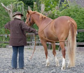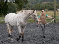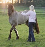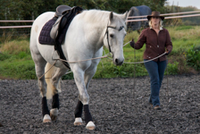 The most common reason I find people seeking my help is due to handling issues of some description. I will not usually, however, directly address the issue straight away (for example saddling/bridling problems, leading/loading problems, farrier difficulties etc), first I work on building a communication on the ground such that I can move any part of the horse on request, for example move the shoulder or hind quarters over, have the horse back up with lightness, etc. Then I have the basic tools and strategies in place to be able to address whatever the particular handling problem is. In many cases I find that basic handling problems such as leading, standing still on request, etc are resolved during this initial process.